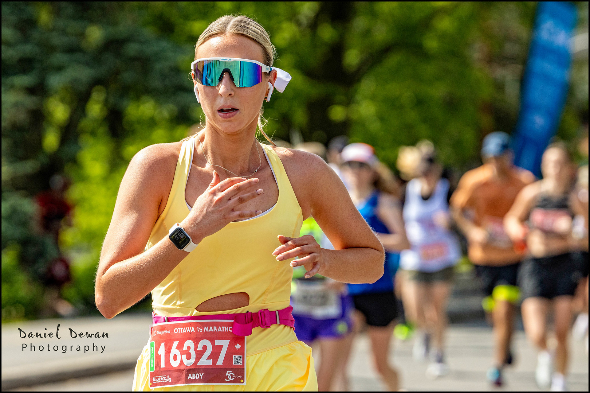 Becca running the Tamarack Ottawa 1/2 Marathon. Sunday May 28 2023