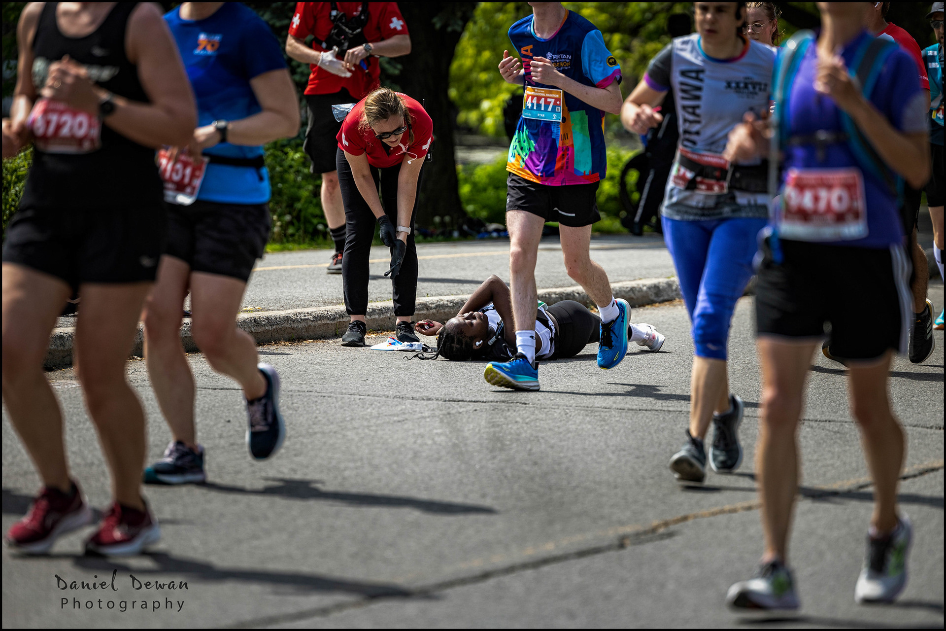 A runner in the Ottawa 1/2 Marathon is down and unable to complete the last kilometre on her run. Sunday May 26 2024.