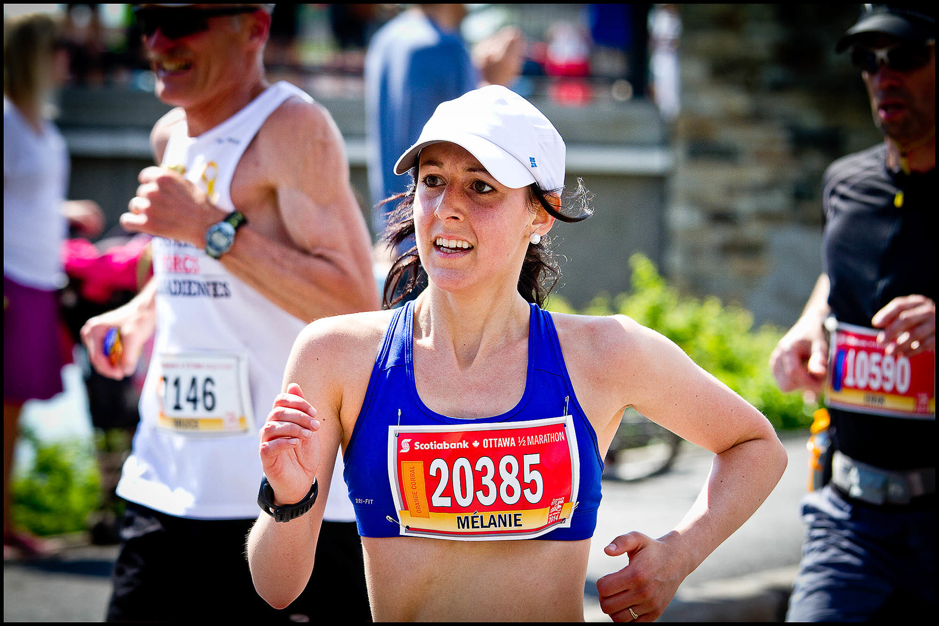 Mélanie runs strong at the 20km point in her Ottawa 1/2 Marathon. Sunday May 26 2024.