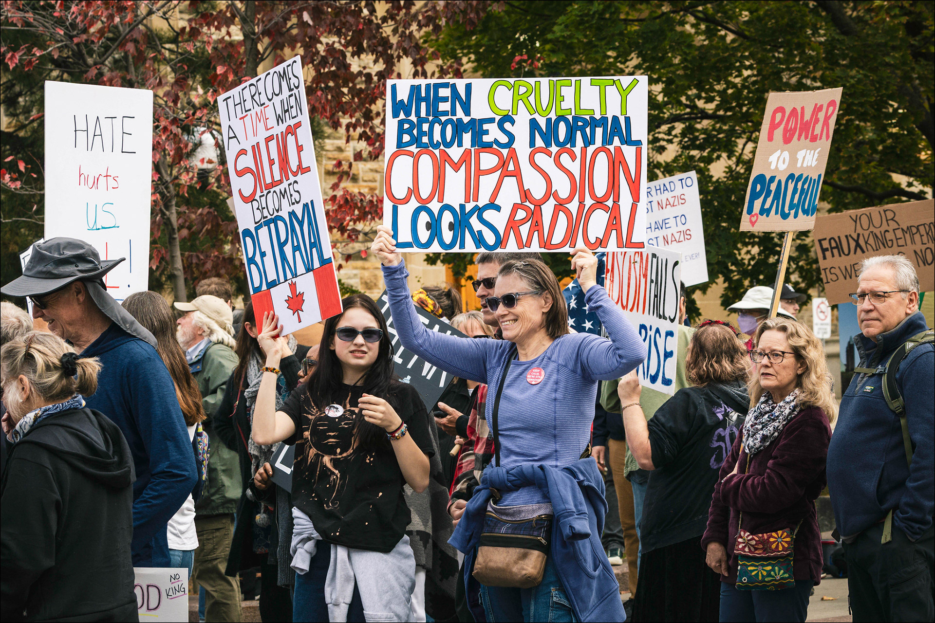 Compassion Looks Radical - No Tyrants Rally on Mackenzie Avenue by the American Embassy in Ottawa.