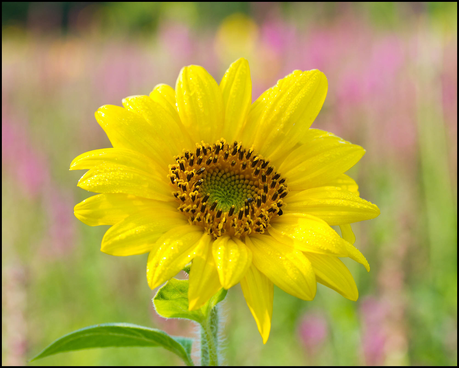 I noticed some sunflowers growing wild inn a field near Glen Roberts Ontario. I stopped my van, crossed the road down into a ditch and climbed over a fence to get this image. August 20 2014.